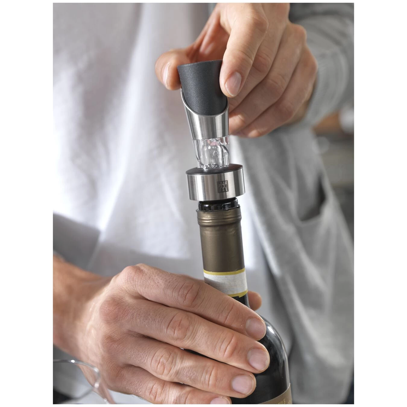 Der Weinausgießer aus der Serie ZWILLING® Sommelier gibt Ihnen die Möglichkeit, Ihren Wein auf eine ansprechende und komfortable Weise zu servieren. Er passt auf alle Weinflaschen und ist außerdem einfach zu reinigen. Der 13 cm lange Weinausgießer verfügt in seinem Inneren über ein Spiralsystem. Dadurch kommt der Wein beim Ausgießen in intensiven Kontakt mit der Luft, sodass er seinen Geschmack besonders gut entfalten kann. Außerdem servieren Sie das Getränk damit tropfenfrei. Mit dem Weinausgießer von ZWILLING werden Sie daher jedes Glas ohne Flecken auf dem Tischtuch genießen können. Danach schließen Sie Ihre geöffnete Flasche ganz einfach mit dem eleganten Flaschenverschluss luftdicht ab.